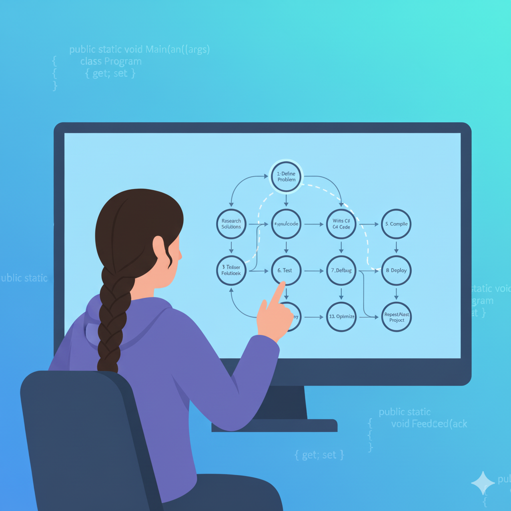 Start with C# syntax, variables, data types, control flow, methods, arrays, and debugging techniques to build stable console applications.